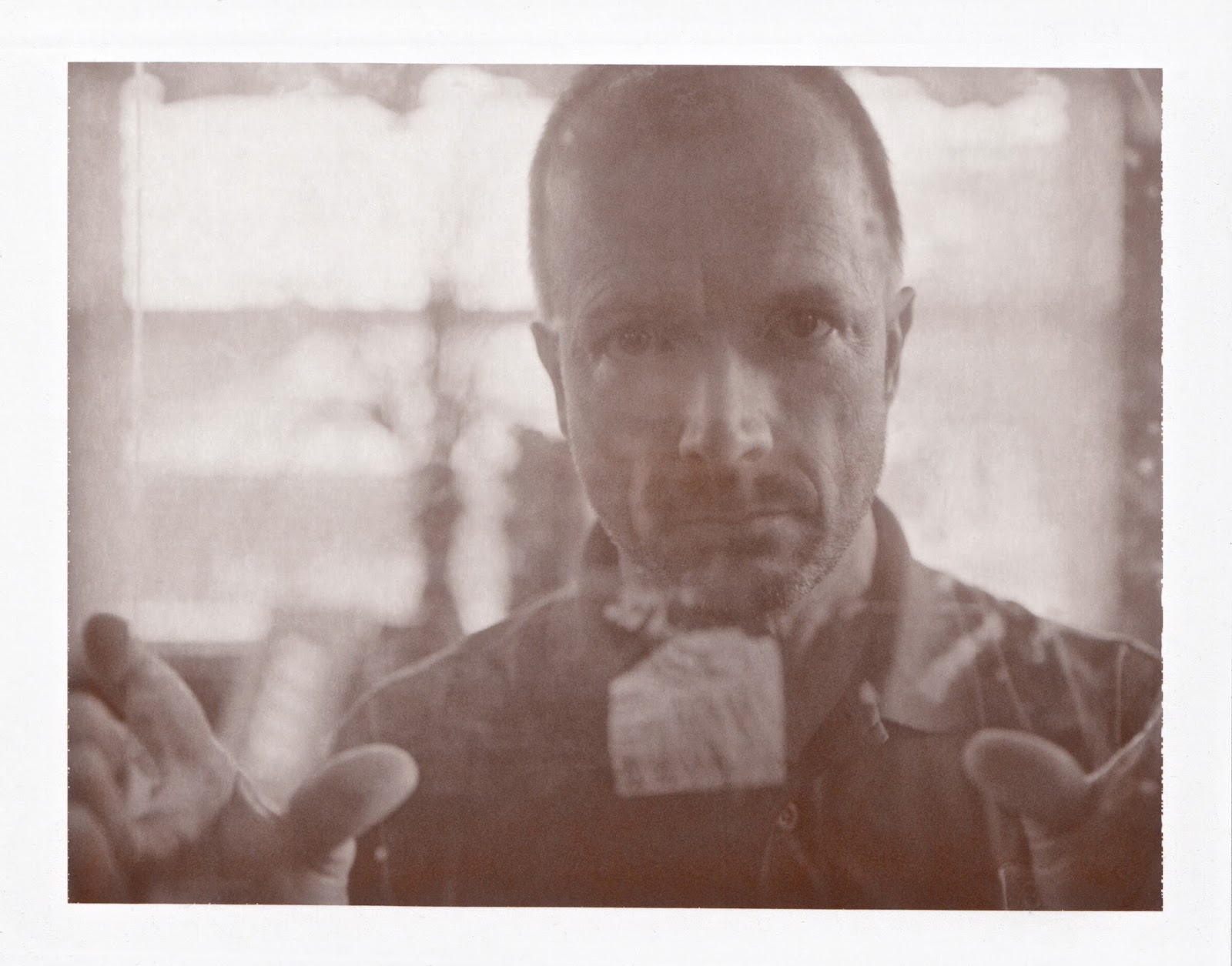 Took this image today at lunch holding and looking through a severely scratched-up piece of glass. The imperfections & reflections are blurred by the shallow depth of field of the Polaroid 180. The expired Polaroid Sepia film is still producing great images...